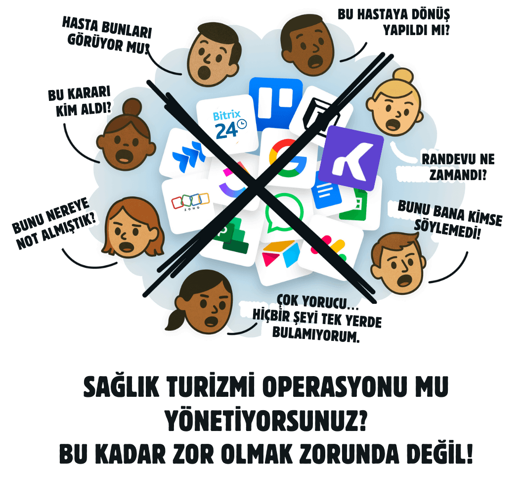 Hasta adayları, satış süreci ve operasyon adımları kullandığınız araçlarla entegre şekilde ilerler.